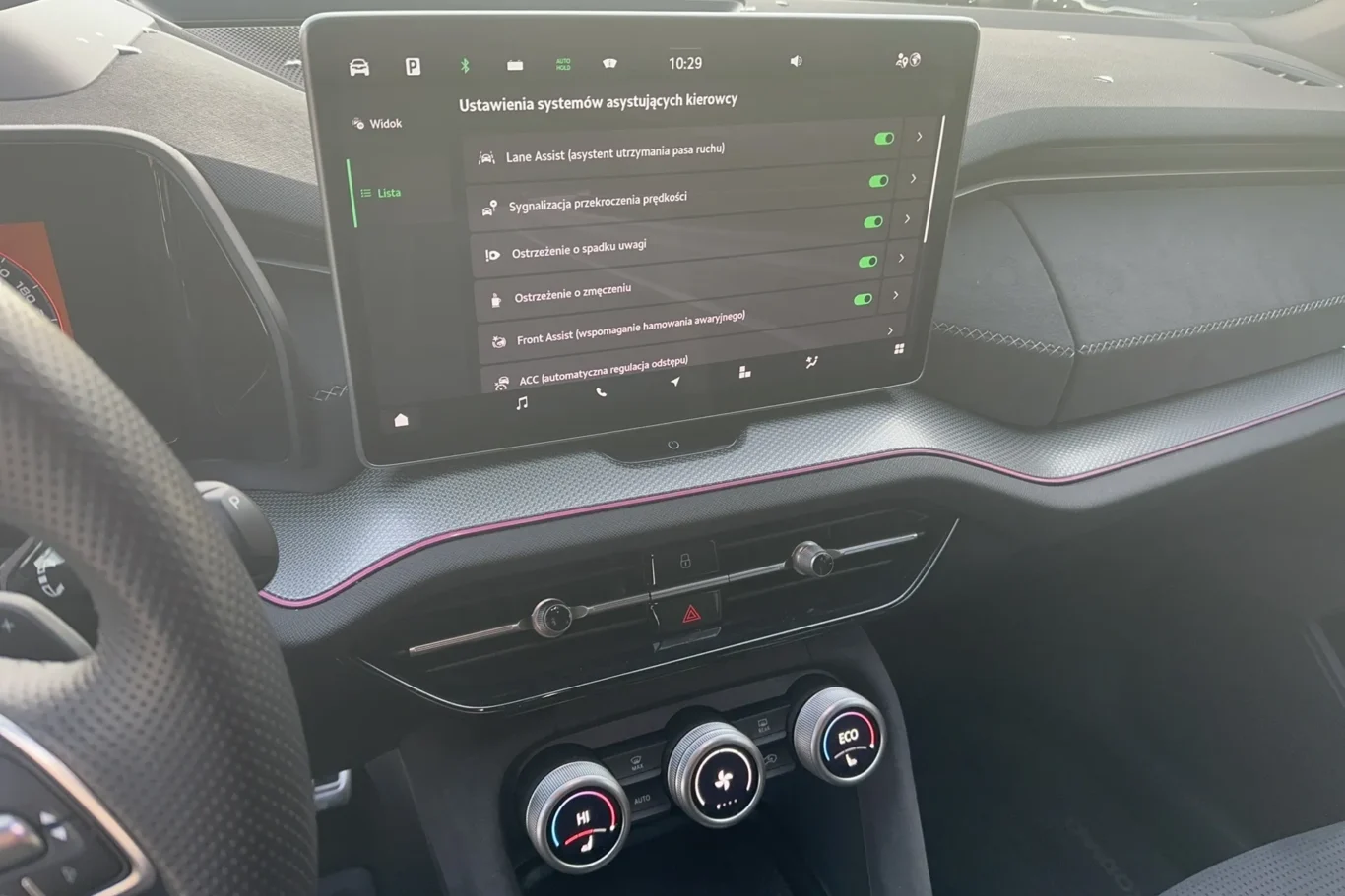 - Lane assist - kontrola zmiany pasa ruchu